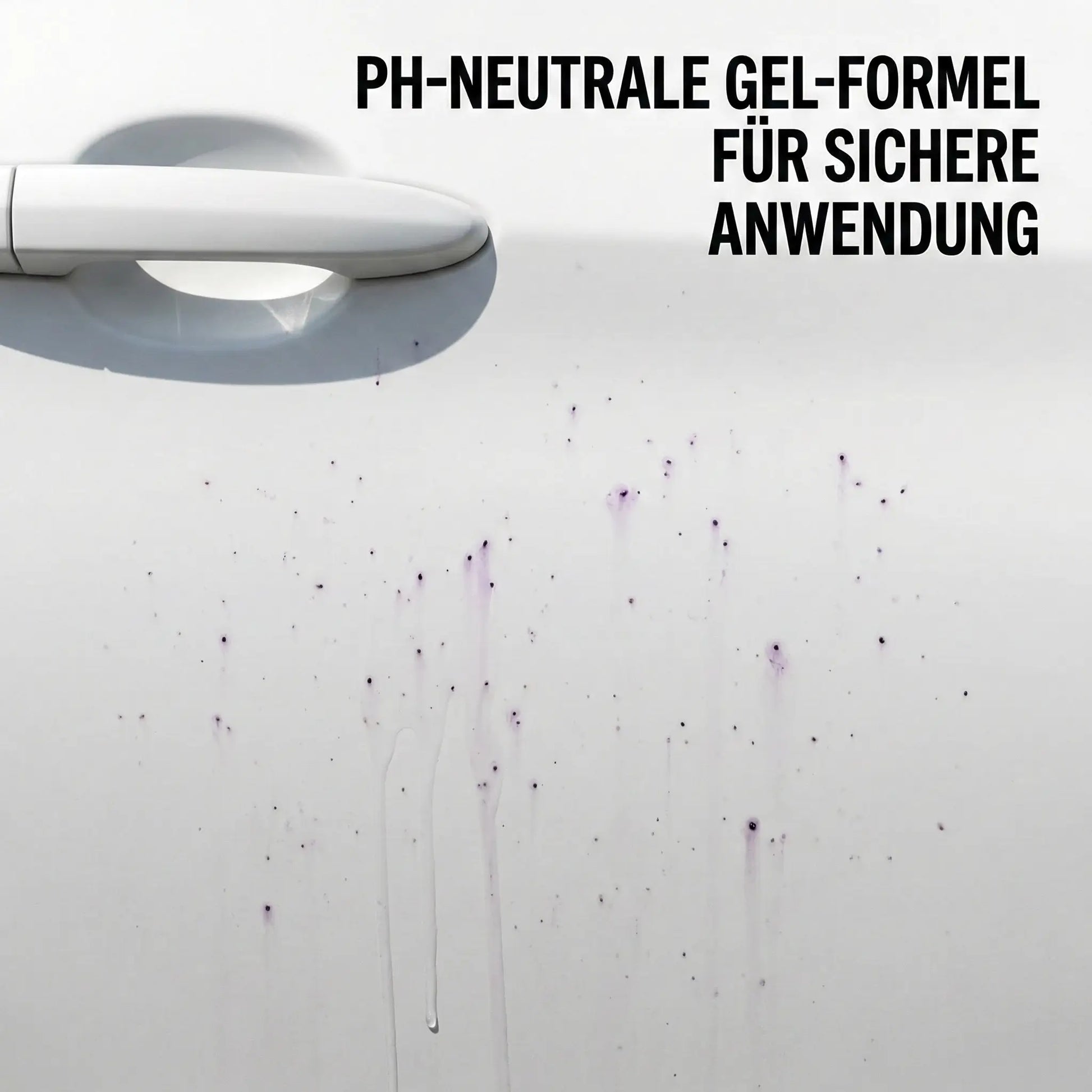Bremsstaub und Industriestaub sind heiße Metallsplitter, die durch die Luft fliegen und im Lack stecken bleiben. Mit Wasser und Shampoo kriegst du diese nicht weg. Wenn du sie ignorierst, beginnen sie zu rosten und "fressen" sich tiefer in den Klarlack. Unser Reiniger wandelt diese festen Metallpartikel in eine wasserlösliche Flüssigkeit um. Das stoppt die Korrosion sofort.